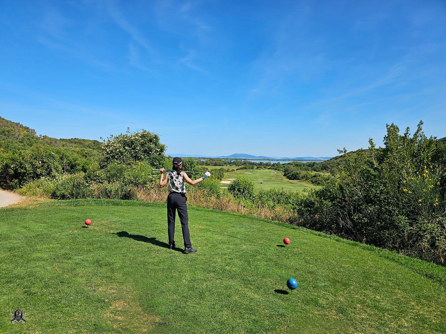 My husband, a devoted golf enthusiast, had been eager to experience the same 18-holes as the PGA Italian Open, and the resort didn’t disappoint. The course was manicured with the kind of precision that makes you believe the earth itself conspired to create lush carpets in verdant green. I’m no one’s caddy. I, too, attempted the long drives and challenging chips out of the sand, absorbing the rhythm of the fairways and flora. We don’t keep score when we golf with each other. We both win when we’re able to laugh at ourselves and with each other over our mistakes, while also celebrating our progress together.