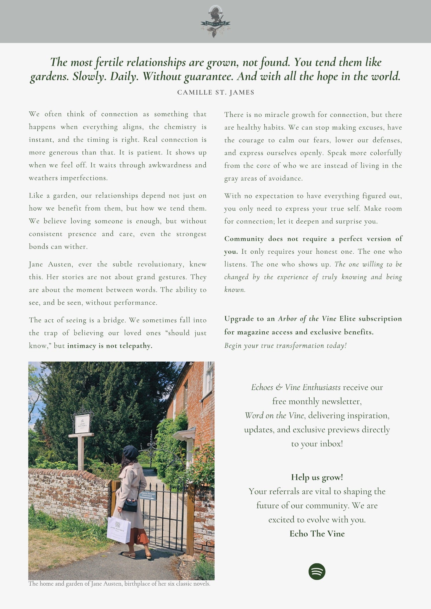 Searching for a meaningful way to gather your friends or team and explore new ideas, share perspectives, and grow together? Give the gift of meaningful connection and personal growth with a paid subscription to Arbor of the Vine. Groups receive a 10% discount and $50 worth of digital downloads for each member. Join and watch what grows. Sign your group up today!