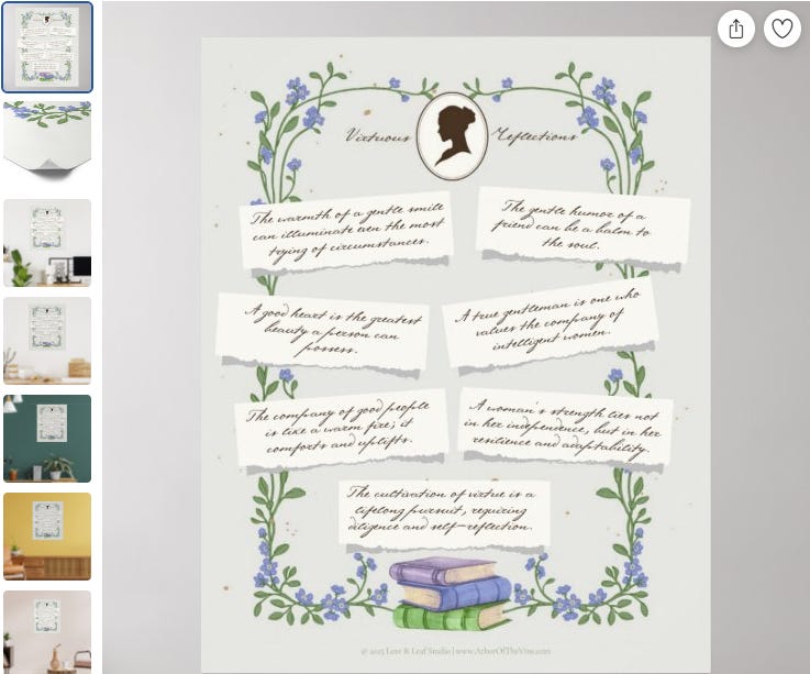 Virtuous Reflections is a tranquil and elegant tribute to the timeless wisdom of human connection, relationships, and virtue, inspired by the gentle wit of Jane Austen.